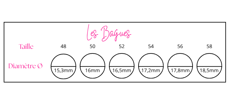 - Mesurer le diamètre de l'une de vos bagues et vous reporter au tableau à gauche.